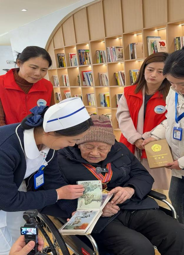 盟员们为老兵送上精心准备的轮椅和牛奶,叮嘱养老院工作人员悉心照料老人生活,及时解决实际困难,让老兵安享幸福晚年。“正是有你们当年的舍生忘死,才有我们如今的国泰民安,你们是民族的脊梁,是我们永远学习的榜样。”盟员代表说道,长津湖精神是宝贵的精神财富,必将激励一代又一代人勇毅前行。
